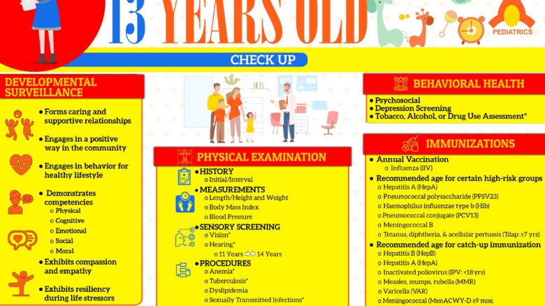 What to expect during a 13-Year Physical Old Physical? DEVELOPMENTAL SURVEILLANCE DEVELOPMENTAL/BEHAVIORAL HEALTH PHYSICAL EXAMINATION IMMUNIZATION 13-Year-Old Anticipatory Guidance Social determinants of health ◊ Risks (interpersonal violence, living situation, food security, family substance use)…