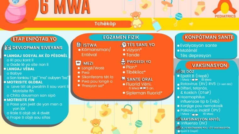 6. Aprè chak vizit, li esansyèl pou fè egzamen fizik ki apwopriye ak laj. Pou tibebe, li dwe toutouni, pou gran timoun, fòk li dezabiye e byen vlope nan yon dra. Gade “Sèvi ak Chaperon pandan egzamen fizik pasyan pedyatrik la ” (//pediatrics.aappublications.org/content/127/5/991.full).